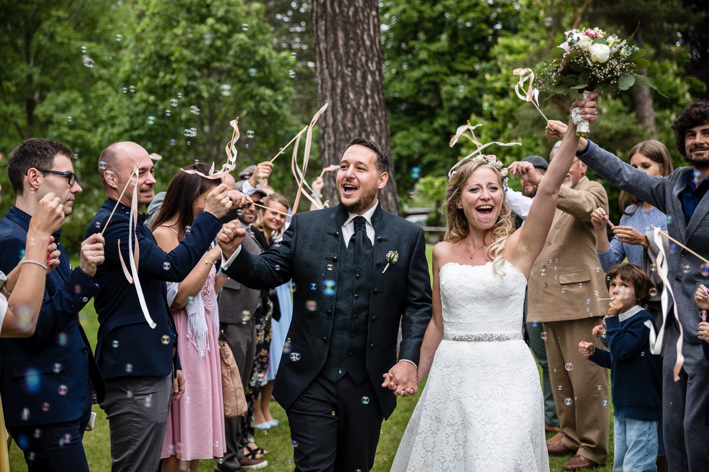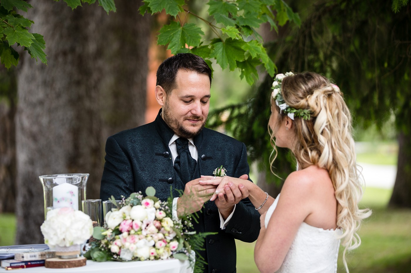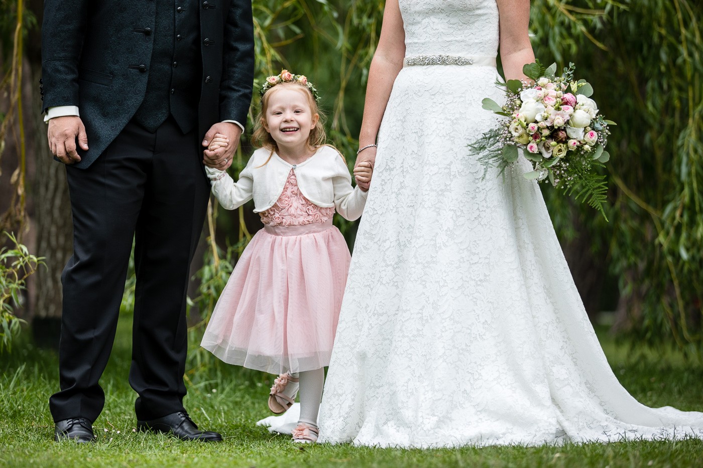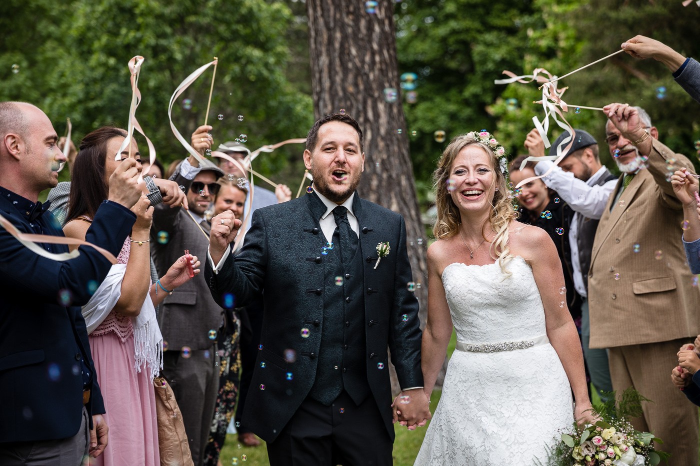Wenn ich an Marlene und Rudis Hochzeitstag im Congress Igls denke, dann fallen mir sofort die vielen lustigen und emotionalen Momente ein, die ihren Tag unvergesslich machten. Gemeinsam mit Rudi wartete ich auf seine Marlene, die zusammen mit Tochter Nora in den Park gebracht wurde. Die Aufregung und Vorfreude auf ihr erstes Zusammentreffen im Hochzeitsoutfit war kaum zu übersehen. Rudi war vom Anblick seiner Zukünftigen überwältigt und beinahe sprachlos. Zusammen waren sie unübersehbar das perfekte Dreamteam. Nach diesem emotionalen „First-look“ starteten wir mit der Portraitserie, wobei ihre süße Tochter für eine äußerst heitere Stimmung sorgte. Im Anschluß zu den Brautpaarportraits trafen die Hochzeitsgäste ein. Nach einem kurzen Empfang startete die freie Trauungszeremonie mitten im Park, die von der Hochzeitsrednerin Birgit Bruckmüller wieder mal wunderbar gestaltet wurde. Bei der perfekt auf die Geschichte des Brautpaares zugeschnittene Rede, waren Freudentränen und auch ein paar Lachtränchen sicher. Auch die Mitgestaltung der Trauung von einigen Gästen machten diesen Moment zum Höhepunkt des Tages. Unter viel Jubel zog das freudestrahlende Brautpaar Richtung Sektempfang aus, wo sie zunächst die vielen, persönlichen Glückwünsche ihrer Liebsten entgegen nahmen. Danach wurde feierlich die Hochzeitstorte angeschnitten und im modernen Saal des Congress Igls ausgelassen weiter gefeiert.