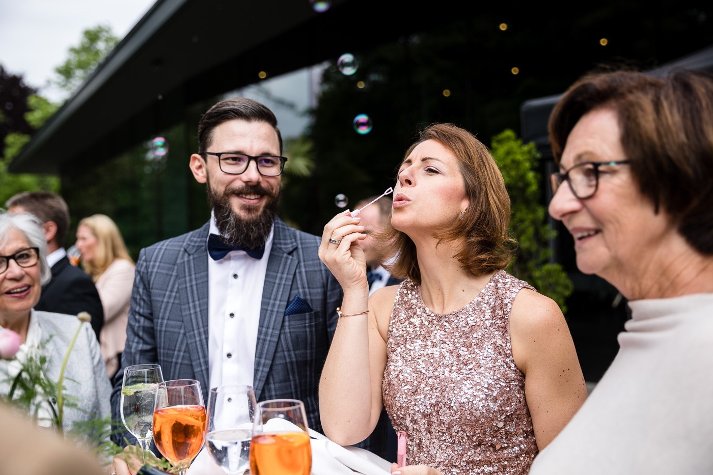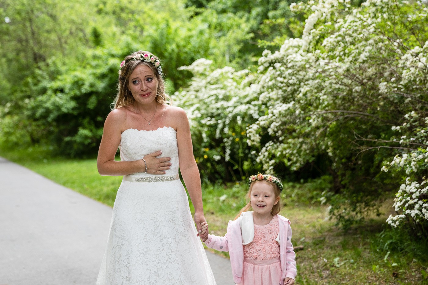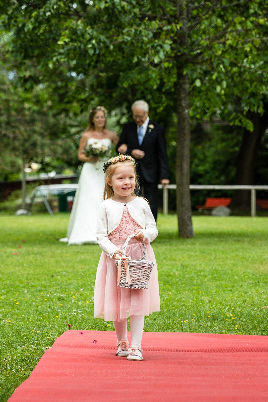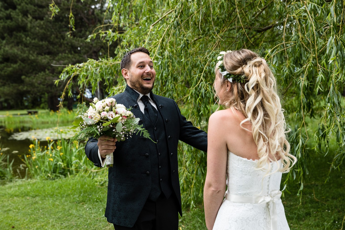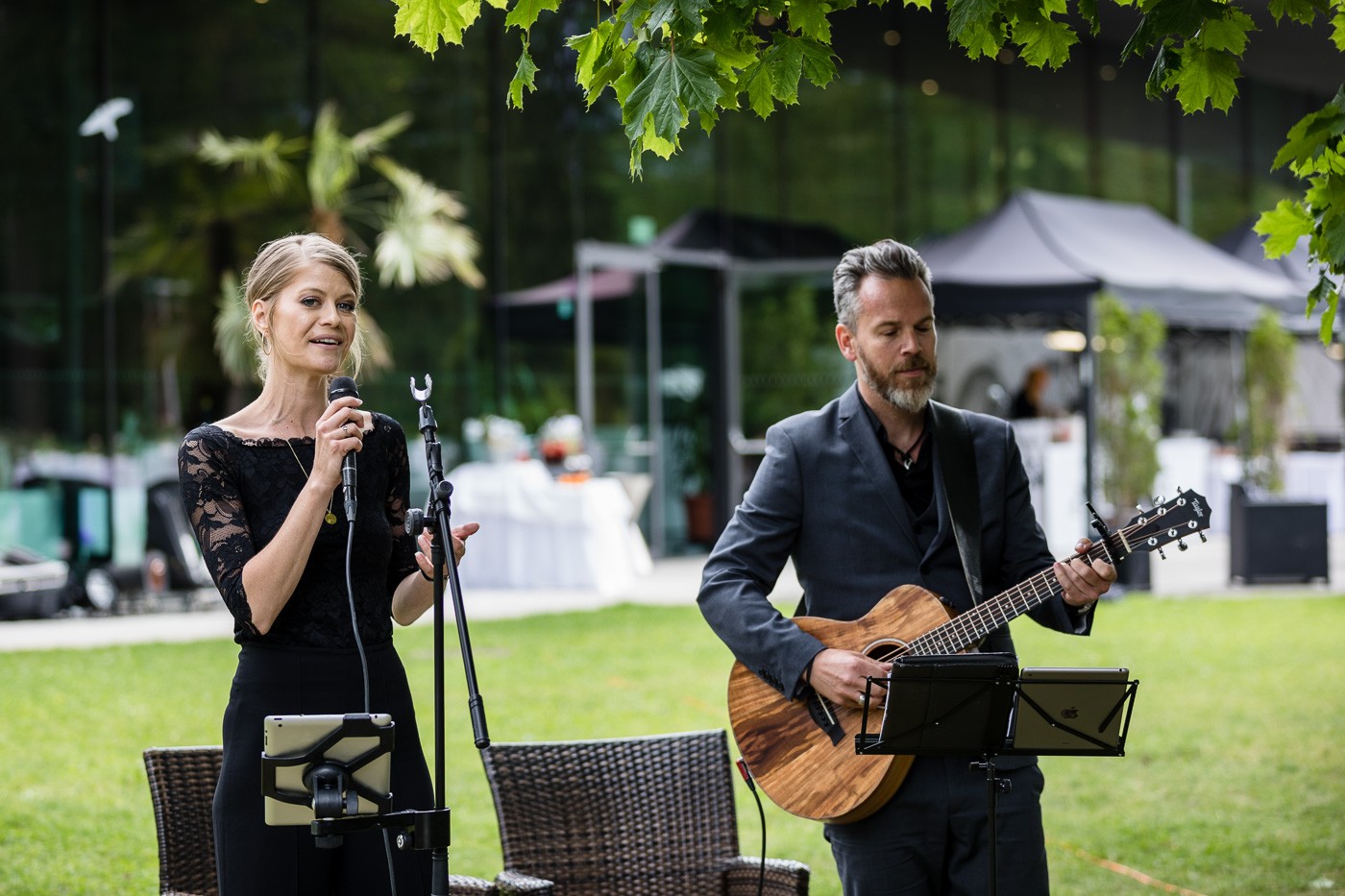 Wenn ich an Marlene und Rudis Hochzeitstag im Congress Igls denke, dann fallen mir sofort die vielen lustigen und emotionalen Momente ein, die ihren Tag unvergesslich machten. Gemeinsam mit Rudi wartete ich auf seine Marlene, die zusammen mit Tochter Nora in den Park gebracht wurde. Die Aufregung und Vorfreude auf ihr erstes Zusammentreffen im Hochzeitsoutfit war kaum zu übersehen. Rudi war vom Anblick seiner Zukünftigen überwältigt und beinahe sprachlos. Zusammen waren sie unübersehbar das perfekte Dreamteam. Nach diesem emotionalen „First-look“ starteten wir mit der Portraitserie, wobei ihre süße Tochter für eine äußerst heitere Stimmung sorgte. Im Anschluß zu den Brautpaarportraits trafen die Hochzeitsgäste ein. Nach einem kurzen Empfang startete die freie Trauungszeremonie mitten im Park, die von der Hochzeitsrednerin Birgit Bruckmüller wieder mal wunderbar gestaltet wurde. Bei der perfekt auf die Geschichte des Brautpaares zugeschnittene Rede, waren Freudentränen und auch ein paar Lachtränchen sicher. Auch die Mitgestaltung der Trauung von einigen Gästen machten diesen Moment zum Höhepunkt des Tages. Unter viel Jubel zog das freudestrahlende Brautpaar Richtung Sektempfang aus, wo sie zunächst die vielen, persönlichen Glückwünsche ihrer Liebsten entgegen nahmen. Danach wurde feierlich die Hochzeitstorte angeschnitten und im modernen Saal des Congress Igls ausgelassen weiter gefeiert.