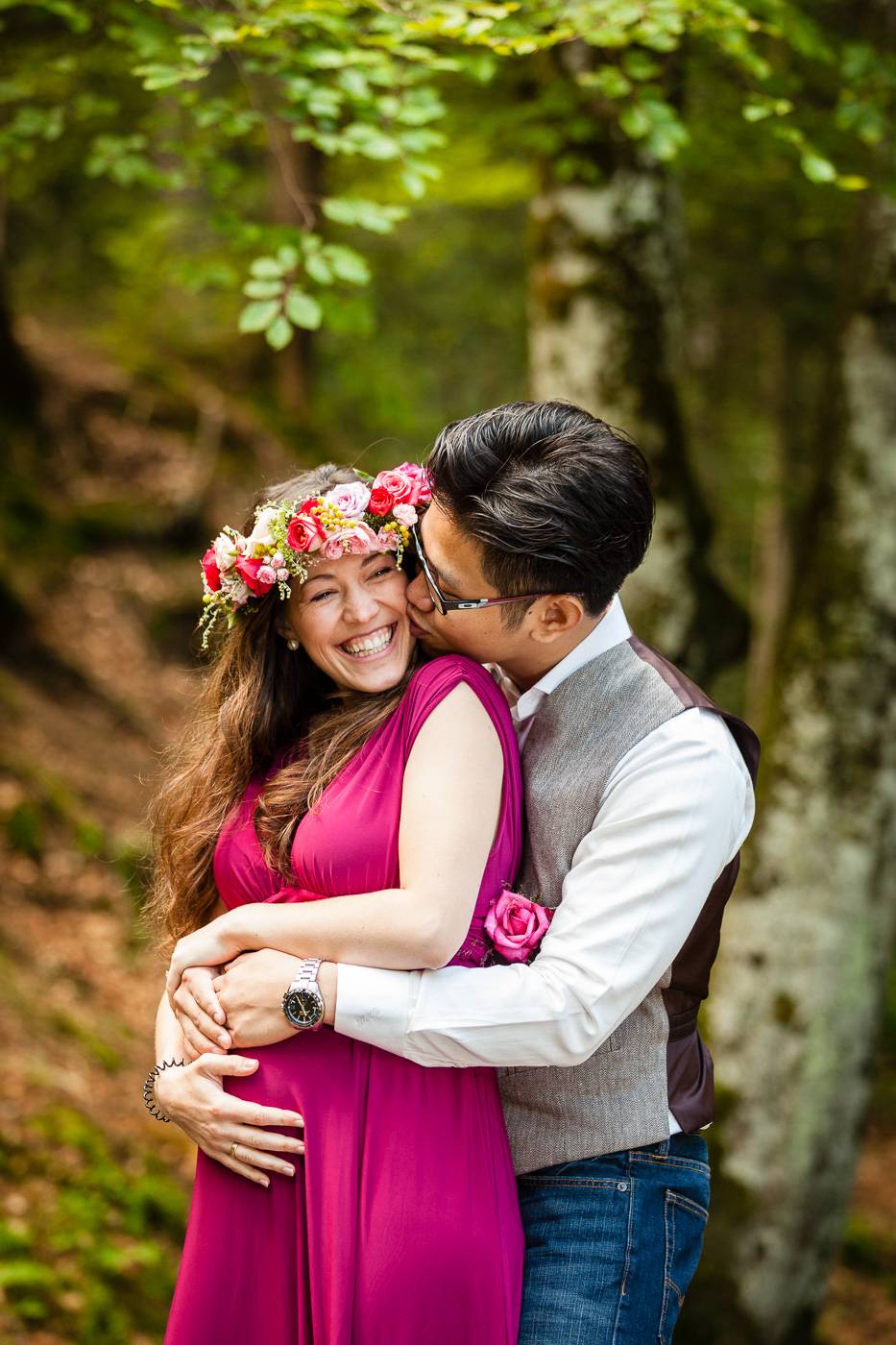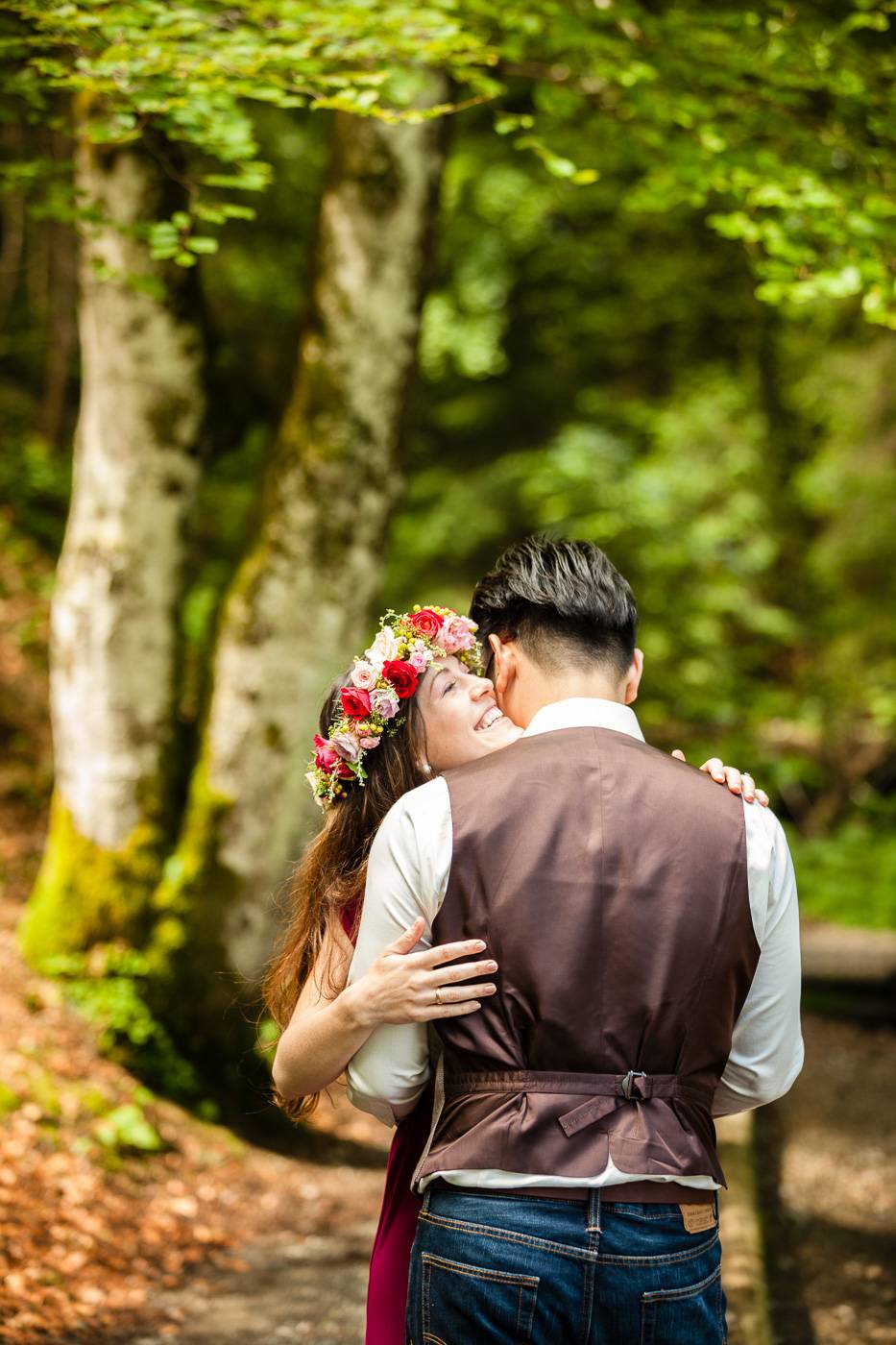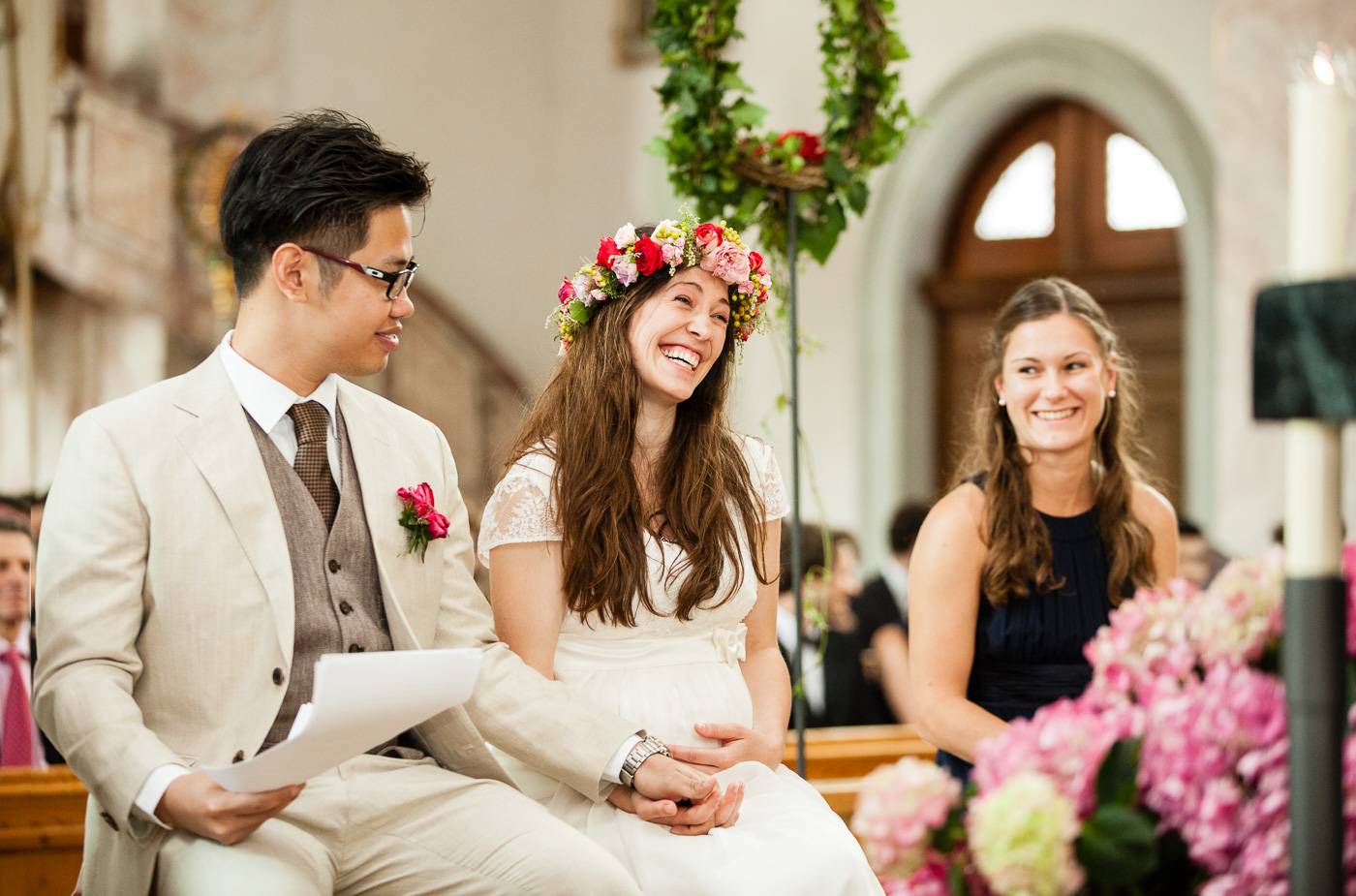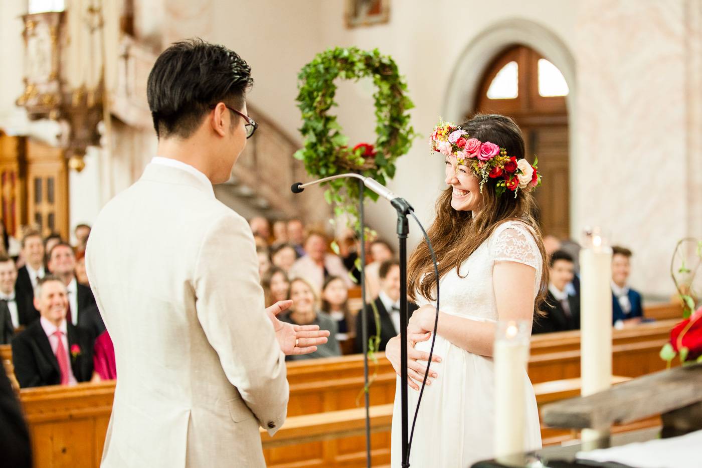 Anfang 2016 erhielt ich eine Hochzeitsanfrage aus Tokio. Elisa, die dort lebende Vorarlbergerin, wollte zusammen mit ihrem Mann Hoang ihre Hochzeit auf österreichische Art und Weise feiern, nachdem sie bereits in Vietnam getraut wurden. Ich fühlte mich wirklich geehrt, dass die beiden so viel Vertrauen in meine Arbeit hatten, dass sie mich ohne persönliches Kennenlernen übers Internet buchten. Am Vorabend ihrer Hochzeit lernte ich nicht nur das sympathische Paar kennen, sondern machte auch noch einen ausgiebigen Locationcheck rund um Schwarzenberg im idyllischen Bregenzerwald. Der Hochzeitstag war dann einfach wunderschön und perfekt organisiert. Die bunt gemischten und teilweise sehr weit angereisten Gäste feierten mit dem überglücklichen Brautpaar Elisa und Hoang eine wunderschöne und sehr emotionale Hochzeit.