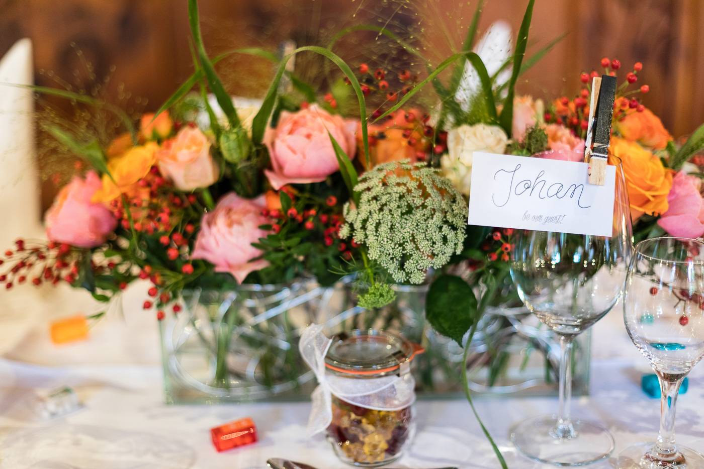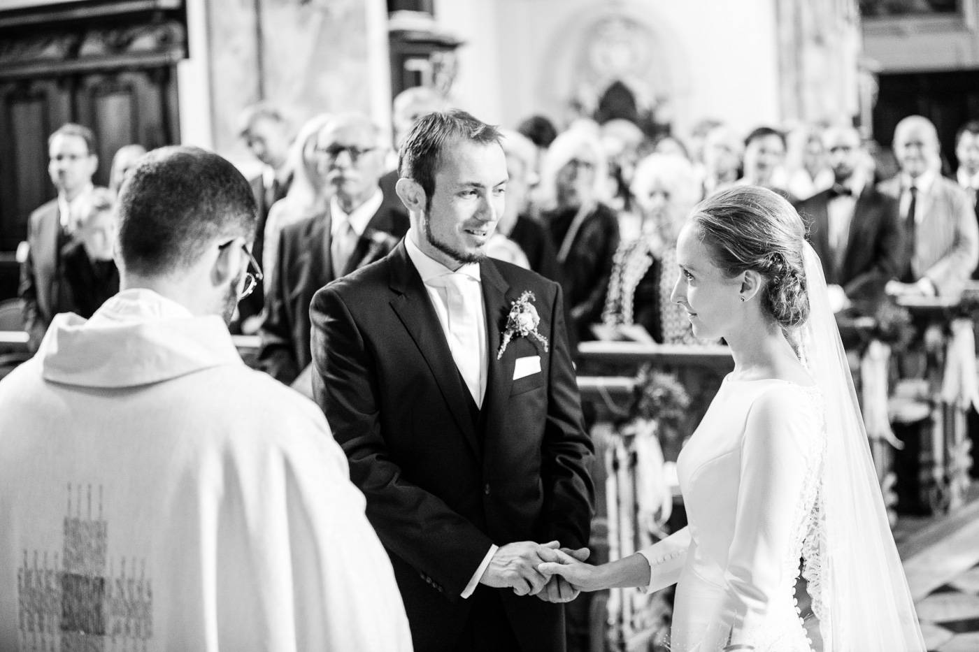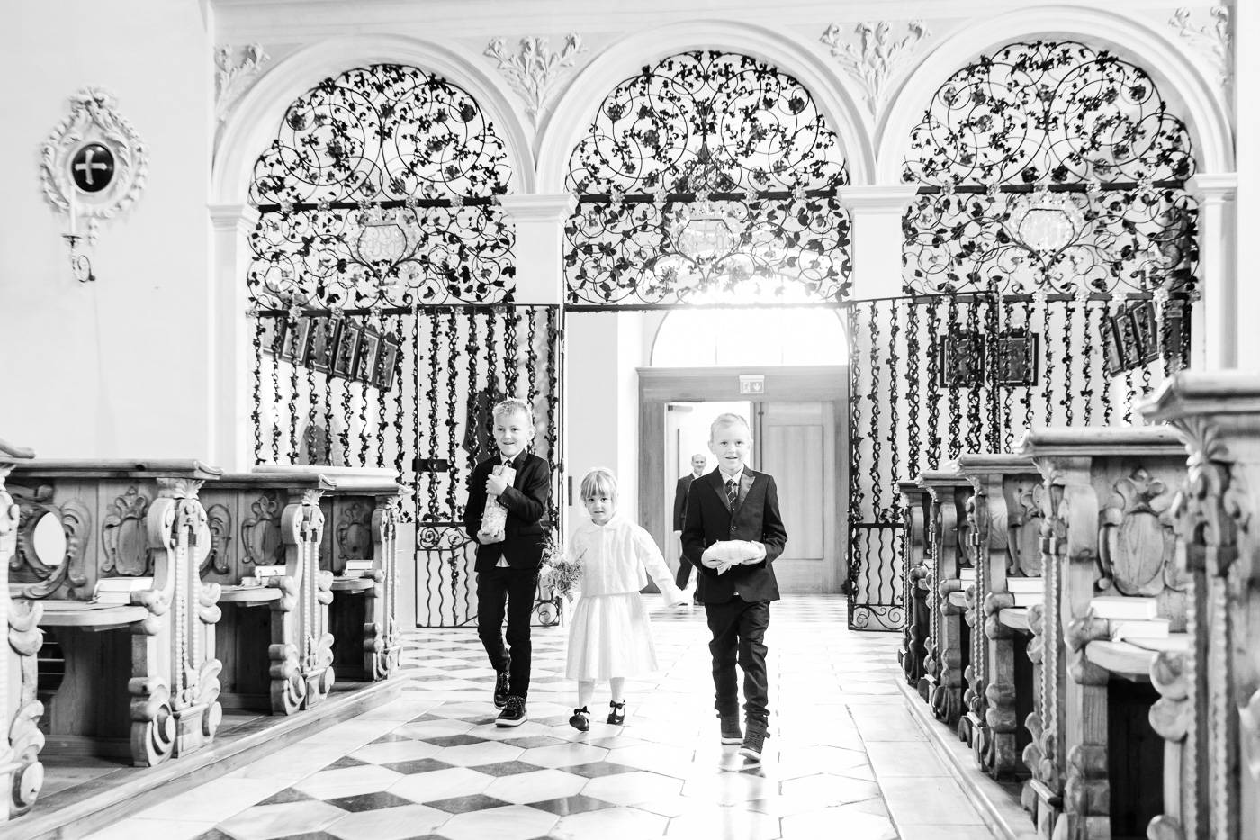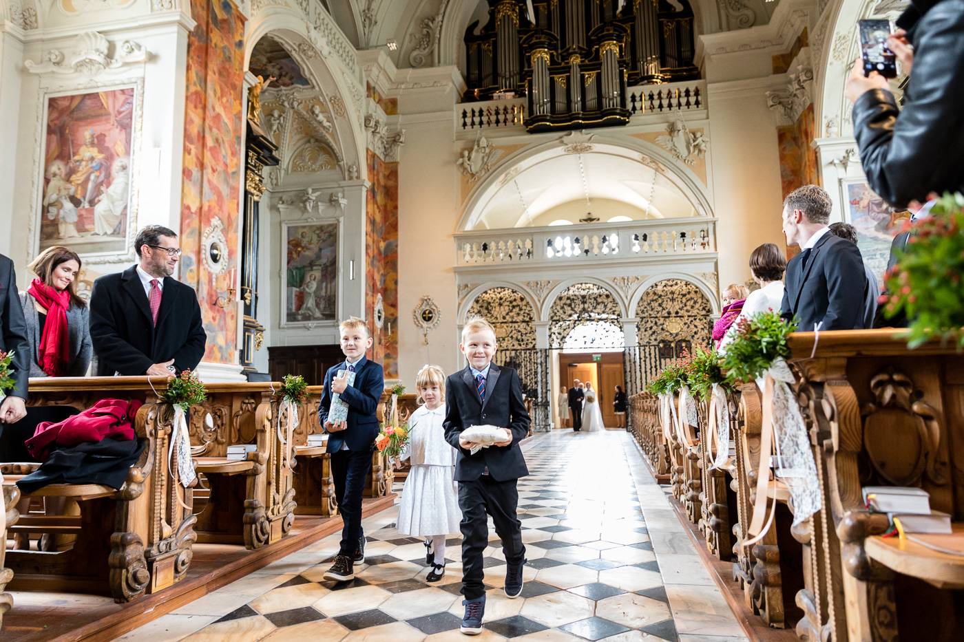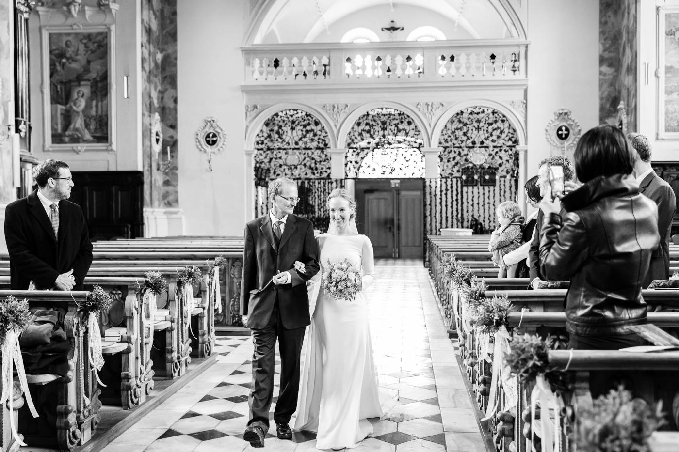 Beim Infogespräch in meinem Studio erzählten mir Johanna und Christoph von ihrem ersten Zusammentreffen. Die beiden lernten sich dort kennen, wo sie als damalige Medizinstudenten sehr viel Zeit verbrachten: im alten Lesesaal der Universität Innsbruck. Am Hochzeitstag durften wir diesen besonderen Ort nutzen, um die Kennenlerngeschichte der beiden zu erzählen. In Verbindung mit der interessanten Architektur und besonderer Lichtsetzung konnte ich mein Brautpaar optimal in Szene setzen. Diese Indoor-Location rettete uns ausserdem vor dem nassen und kalten Wetter draussen. Der einzige Regen, der auf die beiden beim Portraitshooting herunterprasselte, war ein Regen aus Blütenblätter 😉 Eine kurze Wetterbesserung erlaubte es uns dann doch, ein paar Fotos im Freien zu machen. Die stimmungsvolle Trauungszeremonie fand anschließend in der wunderschönen Stiftskirche Wilten statt. Die Blicke, die sich das Brautpaar zuwarf und ein paar Freudenstränchen verrieten ihre starke Verbundenheit und die große Freude über diesen besonderen Tag. Unter einem Mix aus Seifenblasen und ein paar Regentropfen verliess das frisch vermählte Paar freudestrahlend die Kirche. Die abendliche Hochzeitsfeier fand beim Isserwirt in Lans statt, wo Freunde und Verwandte einige sehr nette und lustige Überraschungen für Johanna und Christoph bereit hielten.