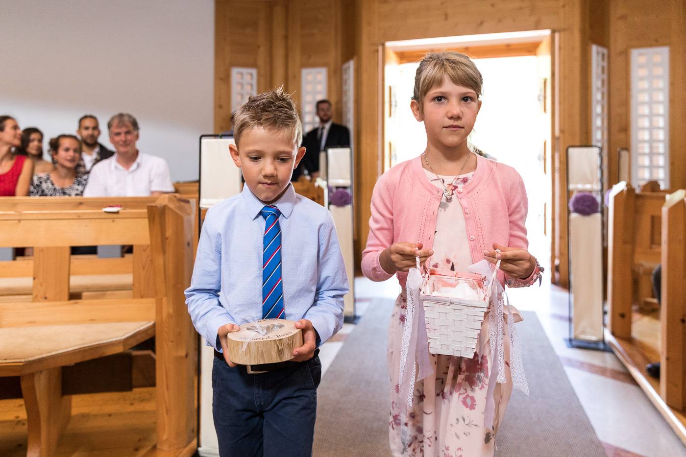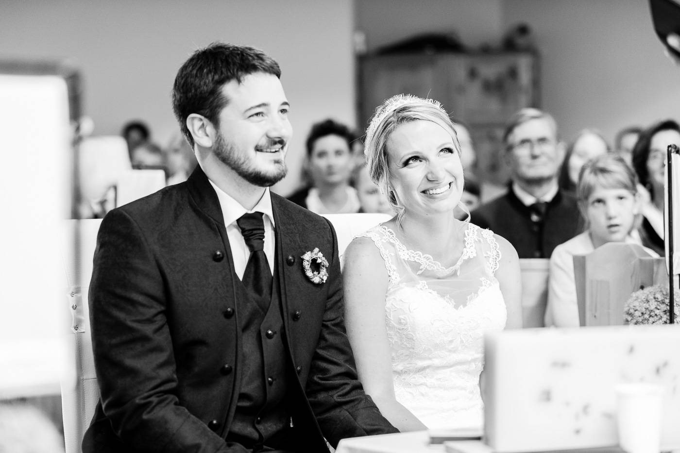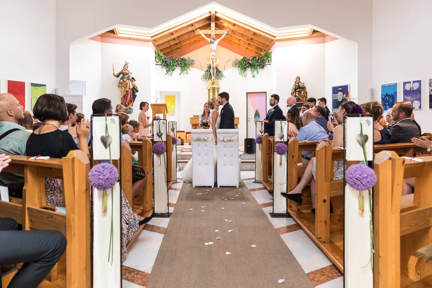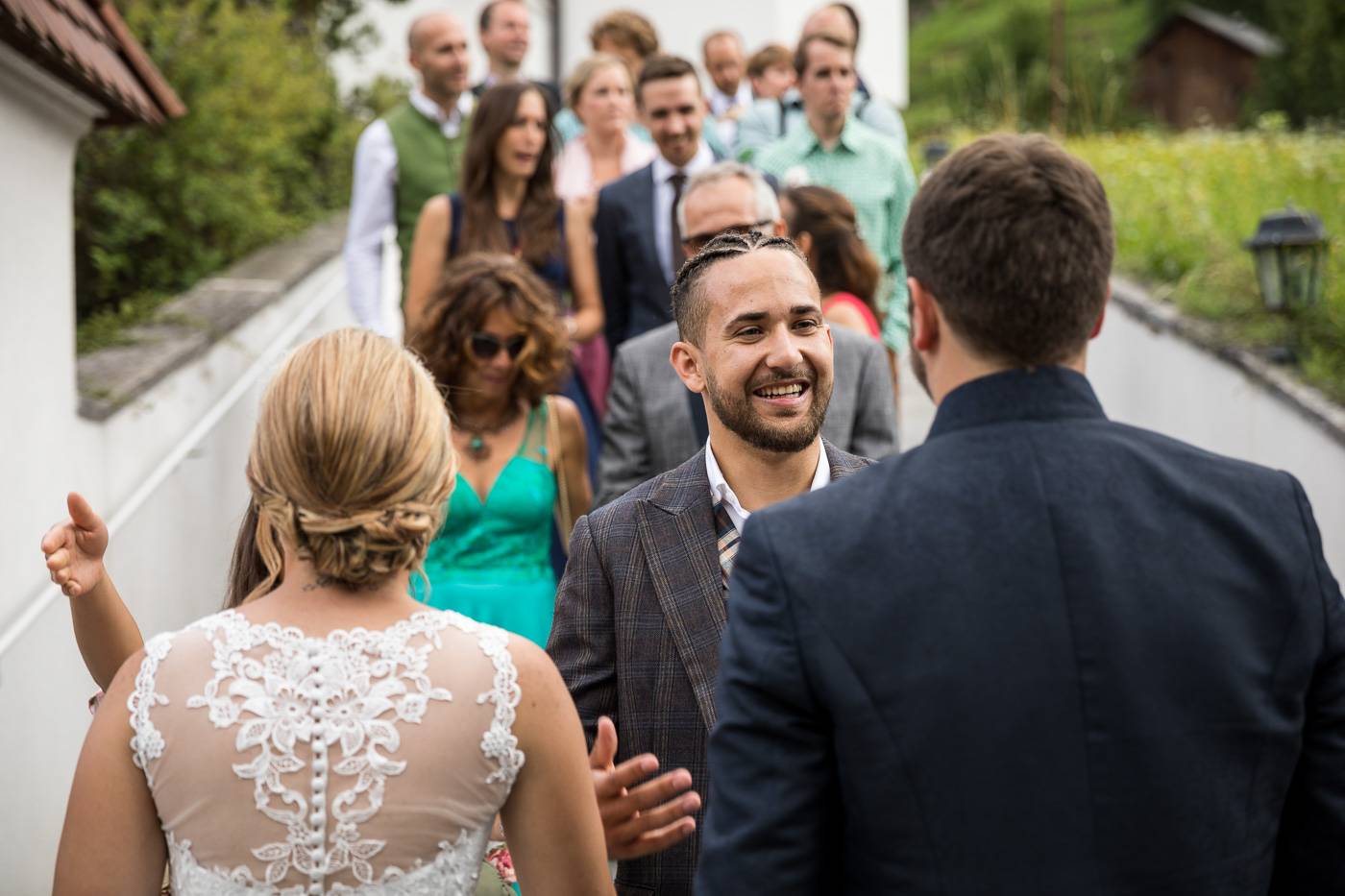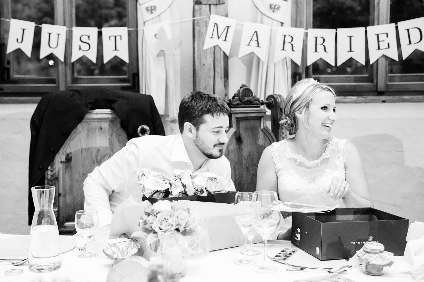 Bei einem längeren USA-Aufenthalt vor etlichen Jahren traf Bianca ihren Zach und es war sehr schnell klar, dass die beiden wie füreinander geschaffen waren. Nach Zachs „großen Sprung über den Teich“ feierten sie letzten Juli ihre wunderbare Hochzeit, natürlich zusammen mit vielen internationalen Gästen. Am Hochzeitstag selbst durfte ich die beiden Turteltäubchen vom Anziehen weg fotografisch begleiten. Das erste Mal an diesem Tag fielen sie sich in ihrem Garten um den Hals, als sie sich das erste Mal im Hochzeitsoutfit sahen. Danach hielt das Brautpaar eine Überraschung für ihre jeweils fünf Brautjungfern und „groomsmen“ parat. Dass bei der anschließenden Portraitserie der Spaßfaktor nicht fehlen durfte, war mir sofort klar, als ich die beiden im Vorfeld kennenlernte. Wir trotzen den wirklich heißen Juli-Temperaturen und liessen uns im Ringelspiel den Fahrtwind um die Ohren blasen 😉 Als Biancas Stöckelschuh zufälligerweise im Holzboden stecken blieb und Zach ihn befreite, traute er seinen Augen nicht. Sein absoluter Lieblingsspruch aus Harry Potter klebte auf Biancas Schuhsohlen. Die Freude und Lachsalve die dieser Entdeckung folgten, war unübersehbar. In der Kirche von Urgen bei Fließ fand am Nachmittag die freie Trauung statt, die von der Hochzeitsrednerin Susan sehr schön und emotional gestaltet wurde. Unter einem Schwall aus Seifenblasen verliess das frischvermählte und überglückliche Brautpaar die Kirche um die vielen Glückwünsche ihrer Gäste entgegen zu nehmen. Mit einem alten VW Käfer Cabrio wurden Bianca und Zach dann nach Schönwies chauffiert, wo eine nasse Überraschung von der Feuerwehr Schönwies auf sie wartete. Bei der Trofana Tyrol in Mils empfing sie danach die Musikkapelle Mils, wo sie nacheinander den Takt angeben durften. Die abendliche Feier eröffnete der „Best man“ Paul mit einer schönen, persönlichen Rede. Danach folgte eine ausgelassene Feier mit vielen gelungenen Einlagen und toller Partystimmung. Der Anschnitt der Hochzeitstorte bildete spätabends den Abschluss meiner fotografischen Begleitung während die Hochzeitsgesellschaft diesen besonderen Freudetag von Bianca und Zach noch stimmungsgeladen ausklingen liess.