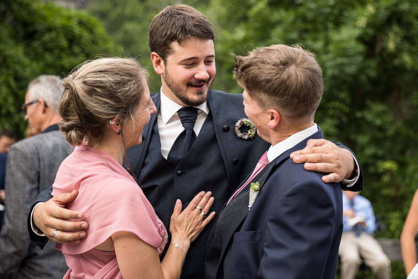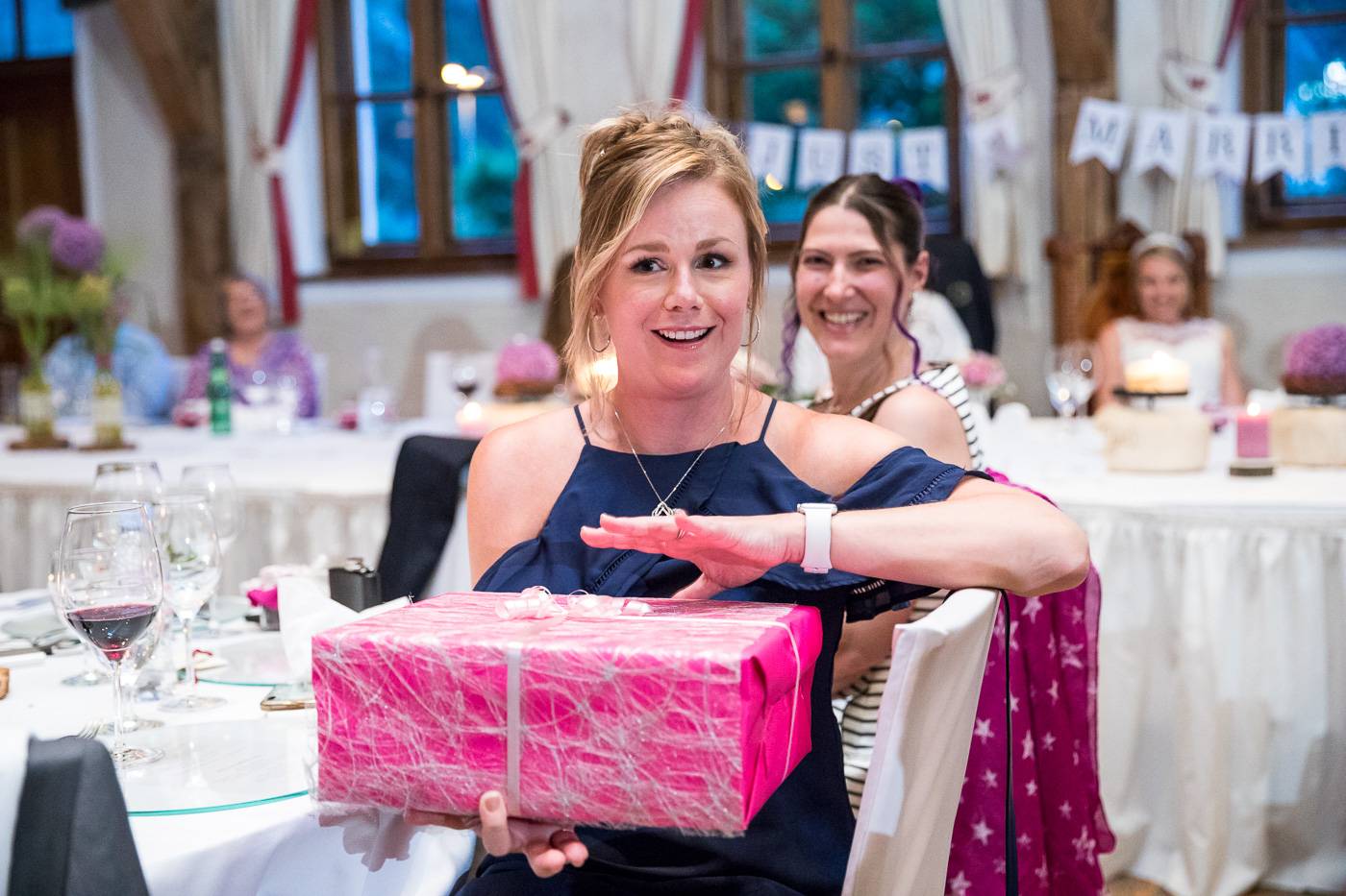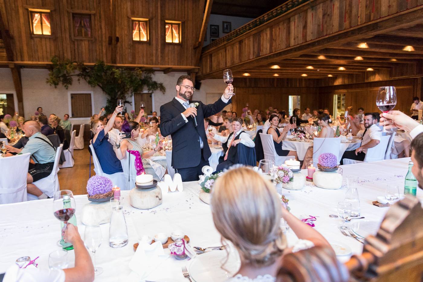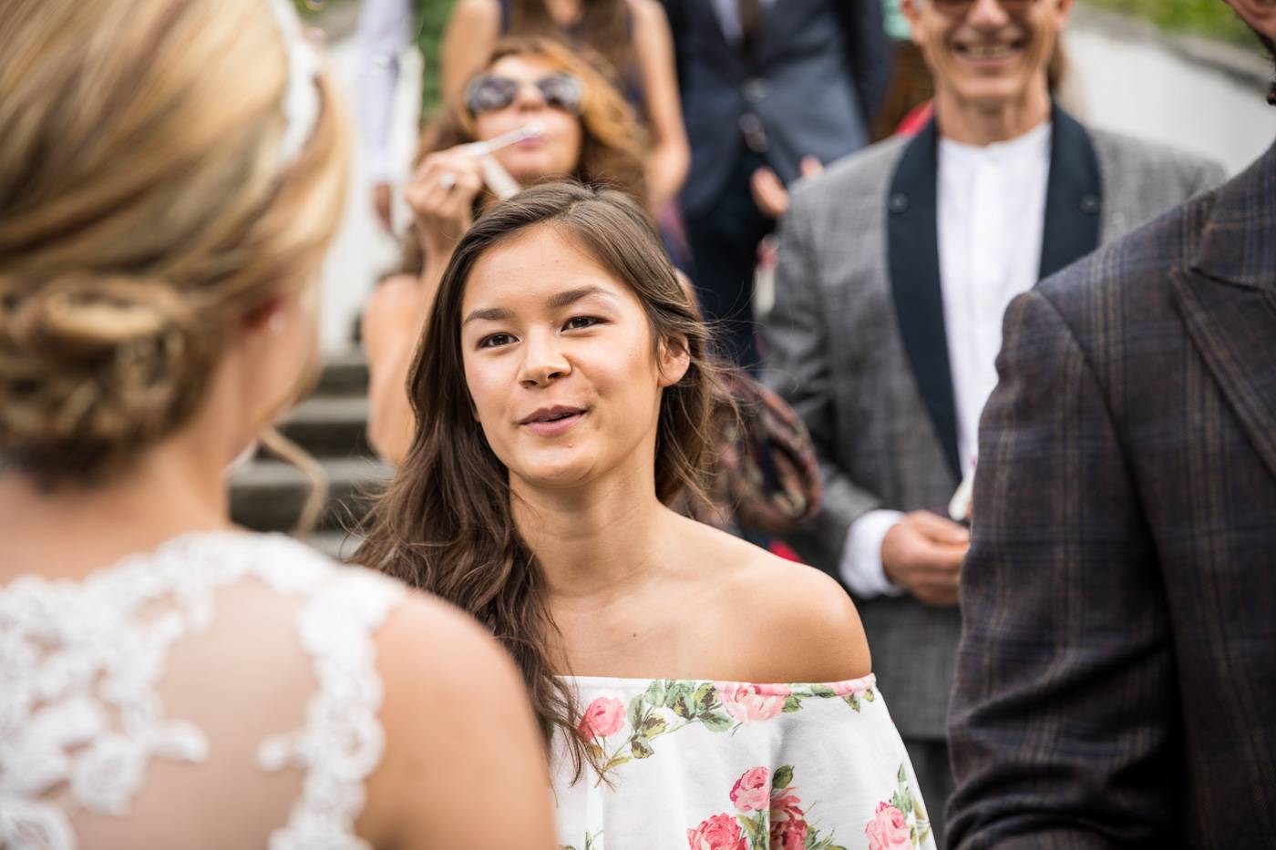 Bei einem längeren USA-Aufenthalt vor etlichen Jahren traf Bianca ihren Zach und es war sehr schnell klar, dass die beiden wie füreinander geschaffen waren. Nach Zachs „großen Sprung über den Teich“ feierten sie letzten Juli ihre wunderbare Hochzeit, natürlich zusammen mit vielen internationalen Gästen. Am Hochzeitstag selbst durfte ich die beiden Turteltäubchen vom Anziehen weg fotografisch begleiten. Das erste Mal an diesem Tag fielen sie sich in ihrem Garten um den Hals, als sie sich das erste Mal im Hochzeitsoutfit sahen. Danach hielt das Brautpaar eine Überraschung für ihre jeweils fünf Brautjungfern und „groomsmen“ parat. Dass bei der anschließenden Portraitserie der Spaßfaktor nicht fehlen durfte, war mir sofort klar, als ich die beiden im Vorfeld kennenlernte. Wir trotzen den wirklich heißen Juli-Temperaturen und liessen uns im Ringelspiel den Fahrtwind um die Ohren blasen 😉 Als Biancas Stöckelschuh zufälligerweise im Holzboden stecken blieb und Zach ihn befreite, traute er seinen Augen nicht. Sein absoluter Lieblingsspruch aus Harry Potter klebte auf Biancas Schuhsohlen. Die Freude und Lachsalve die dieser Entdeckung folgten, war unübersehbar. In der Kirche von Urgen bei Fließ fand am Nachmittag die freie Trauung statt, die von der Hochzeitsrednerin Susan sehr schön und emotional gestaltet wurde. Unter einem Schwall aus Seifenblasen verliess das frischvermählte und überglückliche Brautpaar die Kirche um die vielen Glückwünsche ihrer Gäste entgegen zu nehmen. Mit einem alten VW Käfer Cabrio wurden Bianca und Zach dann nach Schönwies chauffiert, wo eine nasse Überraschung von der Feuerwehr Schönwies auf sie wartete. Bei der Trofana Tyrol in Mils empfing sie danach die Musikkapelle Mils, wo sie nacheinander den Takt angeben durften. Die abendliche Feier eröffnete der „Best man“ Paul mit einer schönen, persönlichen Rede. Danach folgte eine ausgelassene Feier mit vielen gelungenen Einlagen und toller Partystimmung. Der Anschnitt der Hochzeitstorte bildete spätabends den Abschluss meiner fotografischen Begleitung während die Hochzeitsgesellschaft diesen besonderen Freudetag von Bianca und Zach noch stimmungsgeladen ausklingen liess.